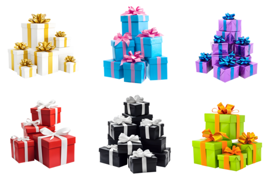 Set of multicolored gift boxes isolated on a transparent background PNG