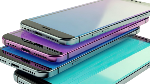 3D Smartphone with a green frame and purple buttons isolated on a gray background