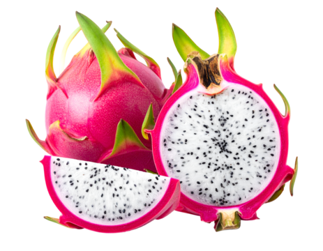 whole and half dragonfruit isolated on transparent png