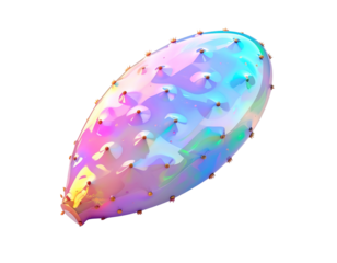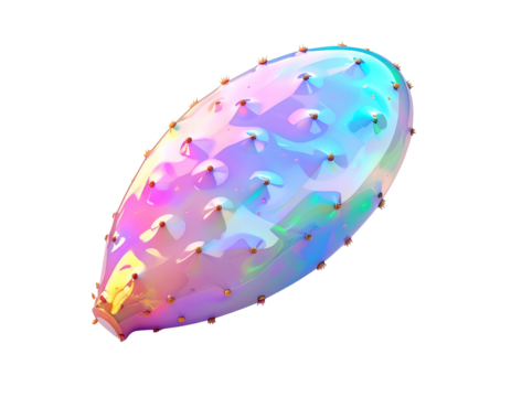 A glowing, prismatic, cactus fruit, with tiny spiky growths, on black