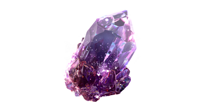 Sparkling amethyst gemstone isolated PNG, purple crystal with facets for jewelry design and luxury concepts on transparent background