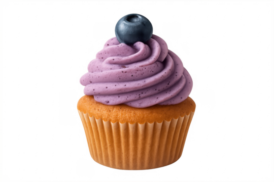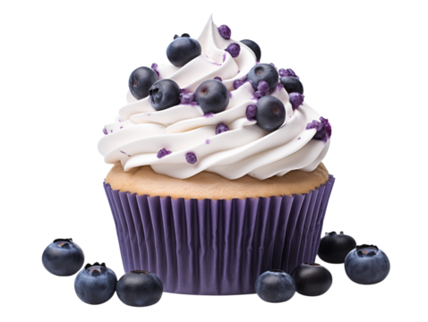 Delicious blueberry cupcake with purple frosting on transparent background