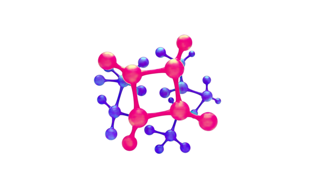 3D rendered illustration of a colorful, heart-shaped DNA molecule with beads and stones, showcasing a vibrant blend of pink and blue hues
