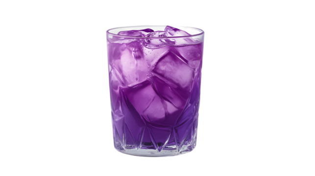 Vibrant purple drink in a glass jar with bubbles, perfect for refreshing summer sips. transparent background