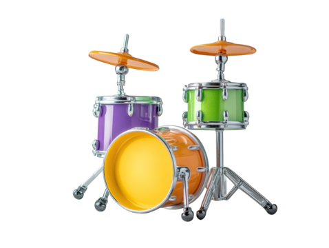 Vibrant Purple Drum Adorned with Golden Accents and Drumsticks Isolated on Transparent Background Capturing Musical Essence