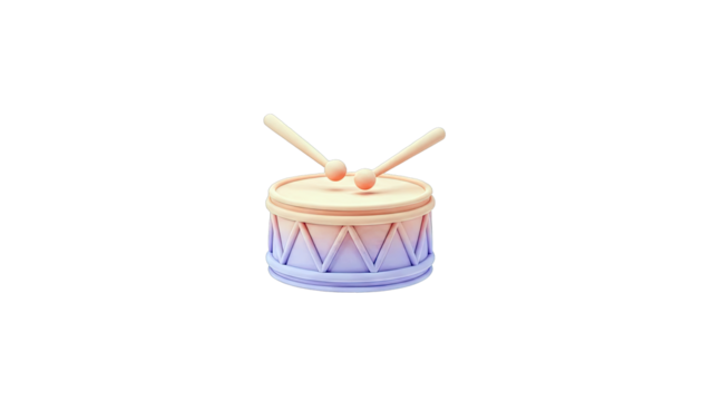 Vibrant purple drum with pennants on transparent background