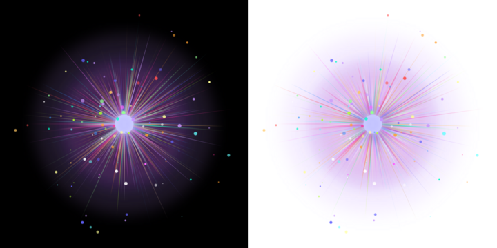 Dual Vibrant Particle Explosions Abstract Geometric Design Element
