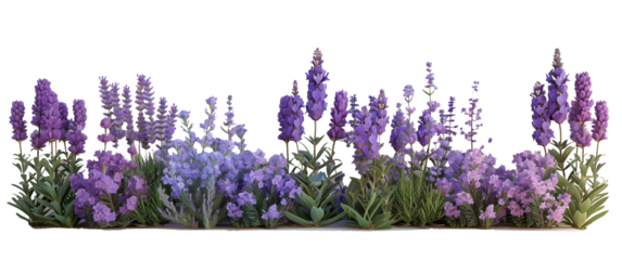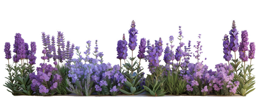 Beautiful array of purple flowers in full bloom, set against a transparent  background. Ideal for gardening, floral arrangements, and nature-themed designs.