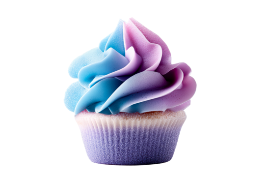 Vibrant artistic cupcakes with brightly colored frosting on transparent background