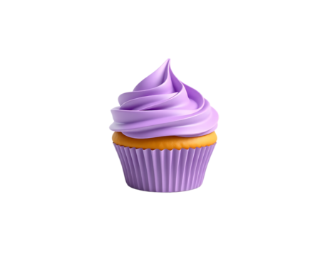 Delicious cupcake with purple frosting and candied orange peel isolated PNG, sweet treat for birthdays and celebrations