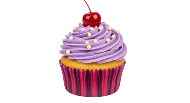 Delicious cupcake with purple frosting and star sprinkles isolated, sweet dessert PNG