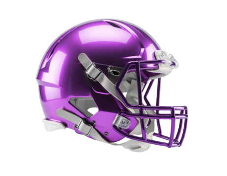 Pair of purple protective gloves laid side by side with defined cuffs and finger shapes, smooth rubber-like surface, and neat safety equipment presentation isolated on transparent background.