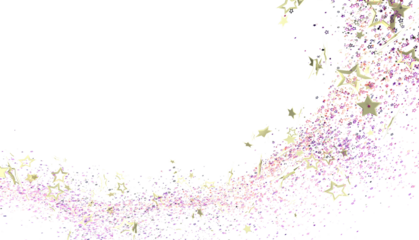 Sparkling star trail background with gold and purple glitter perfect for festive designs, invitations, or presentations.