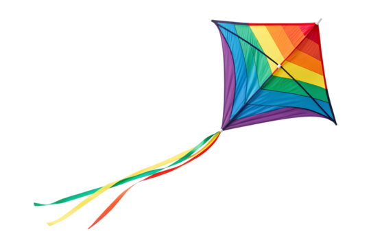 Colorful kite with flowing ribbons isolated on a transparent background rainbow flying