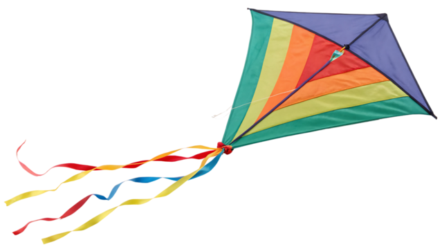 Children running with colorful kite on transparent background
