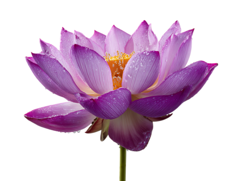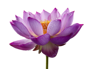 A delicate purple lotus flower with translucent petals is isolated on transparent background