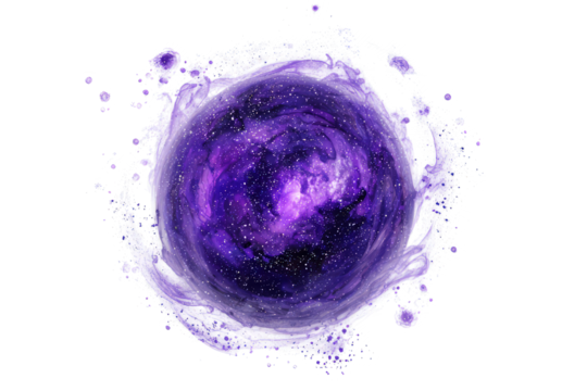 Dark purple cosmic sphere with galaxy texture and smoke . Space and sci-fi concept