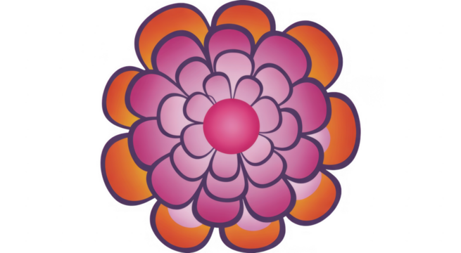 Pink and Orange Flower with Purple Outline petals isolated on a transparent background