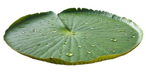 lily pad leaf with water droplets on it, isolated on a transparent background