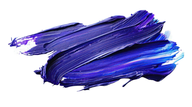 Vibrant purple paint stroke on a transparent background, isolated on transparent or white background.