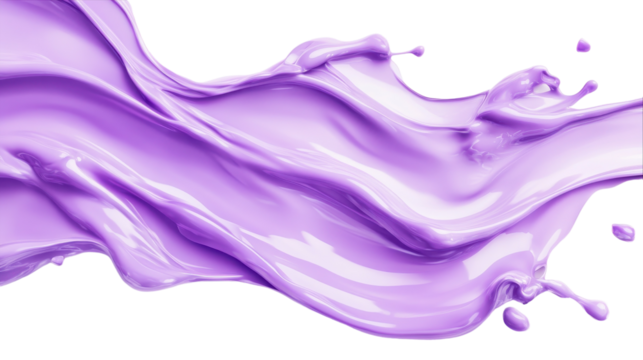 Vibrant purple paint flows gracefully across a smooth white surface, on the transparent background. PNG Format