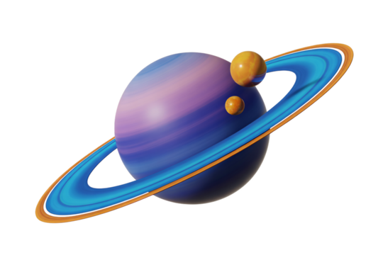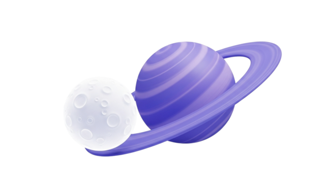 Purple planet with rings isolated PNG, cosmic celestial body on transparent background, astronomy and science fiction concept