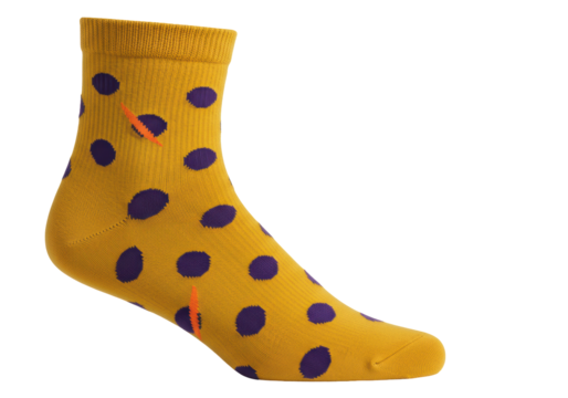 Isolated yellow sock with purple polka dots, warm and comfortable for sport or casual wear