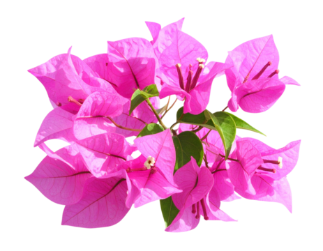 Tropical Bougainvillea Branch with Blooming Flowers and Curved Stem, Side Profile Composition, Isolated