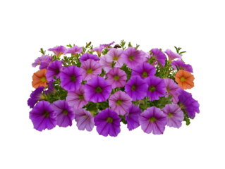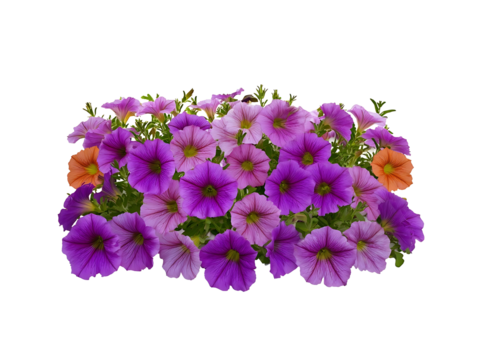 side profile of a tight grouping of petunia flower ground covering centered on a white background realistic