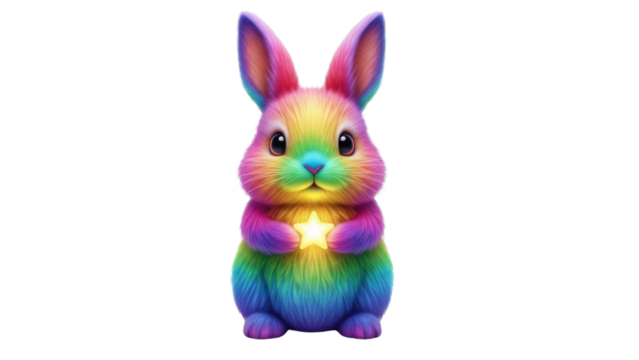 Cute Rainbow Rabbit Illustration Holding a Glowing Star isolated PNG with Transparent Background