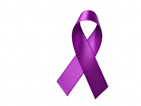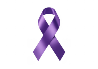 A purple ribbon symbolizing cancer awareness, isolated on a transparent background