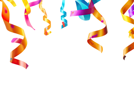 Colorful, swirling ribbons cascading against a black background.  Vibrant hues of pink, orange, yellow, blue, and purple ribbons with a textured, slightly irregular, design