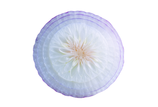 A sliced red onion isolated on transparent background, showcasing its vibrant purple rings and intricate layers, perfect for culinary use