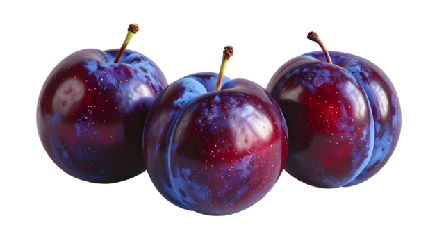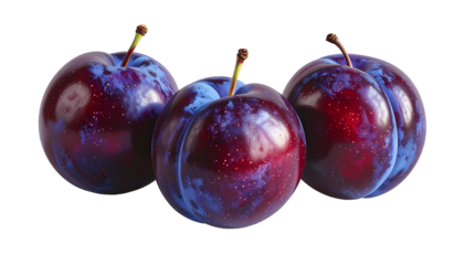 A vibrant, glistening plum with a deep purple hue, against a stark black background