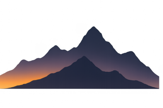 Mountain silhouette with sunset fading sky and transparent background