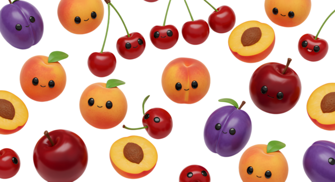 Cute purple flower character smiling, a happy spring blossom with a cheerful face and green leaves, 3d render on transparent background