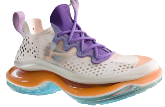 Running shoes for fitness enthusiasts indoor studio product bright colors active lifestyle. Cut out png