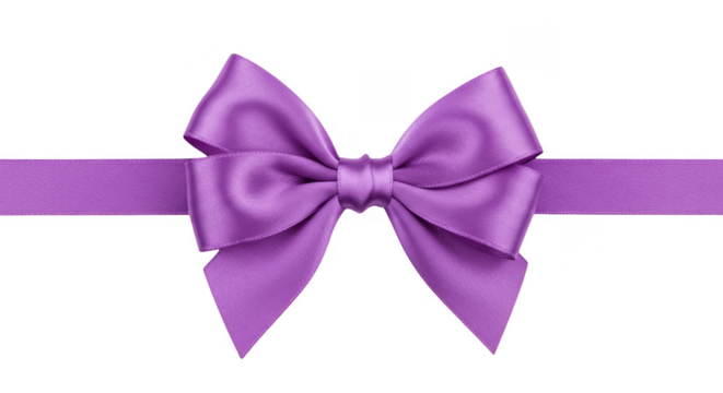 Isolated Purple Sparkle Ribbon Bow for Gift Decoration on Transparent