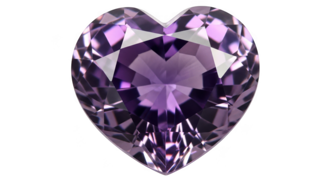 Elegant purple faceted crystal stone on blue circular base, transparent background