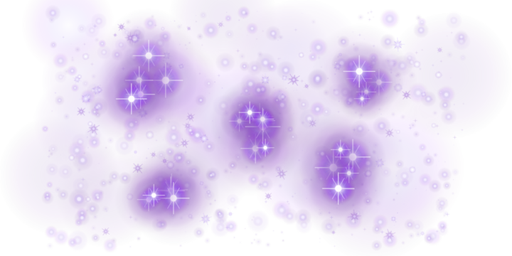 Abstract golden and purple sparkles and dust particles scattered across a dark background isolated on transparent background