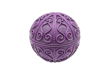 A vibrant purple sphere with a glossy enamel finish, radiating a bold and modern aesthetic, placed in the center on a transparent background
