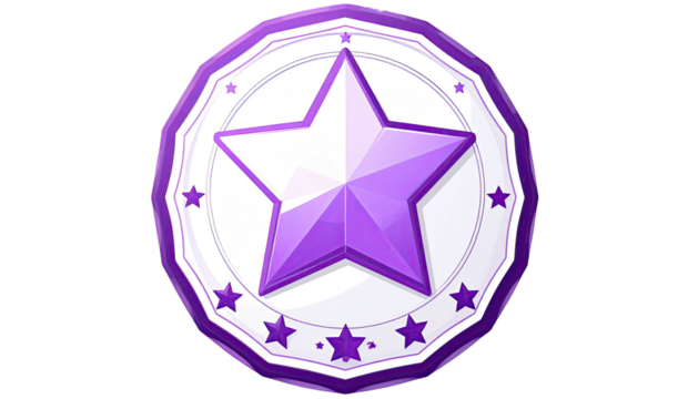 Abstract 3D purple star rating icon visualizing customer satisfaction metrics and client relationship management on a secure digital interface.isolated on white background1