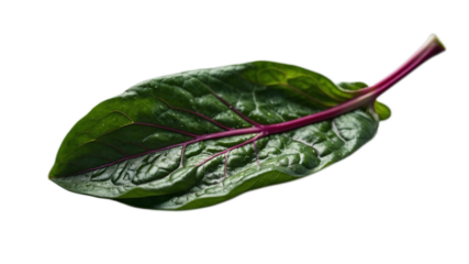 Isolated Swiss chard leaf with a purple stem stands against a neutral backdrop for a fresh design