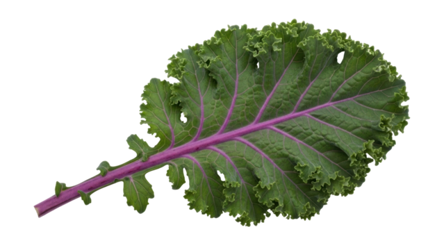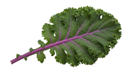 Fresh vibrant green mustard greens with broad, textured leaves and a subtle purple stem, perfect for healthy cuisine, isolated on transparent background
