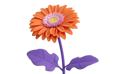 Vibrant Orange Gerbera Daisy with Purple Stem and Leaves