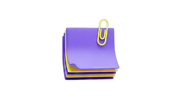 3D Rendered Sticky Notes with Paperclip on White Background