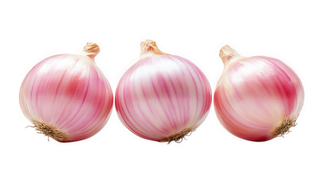Two whole garlic bulbs with purple stripes isolated on transparent background