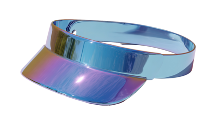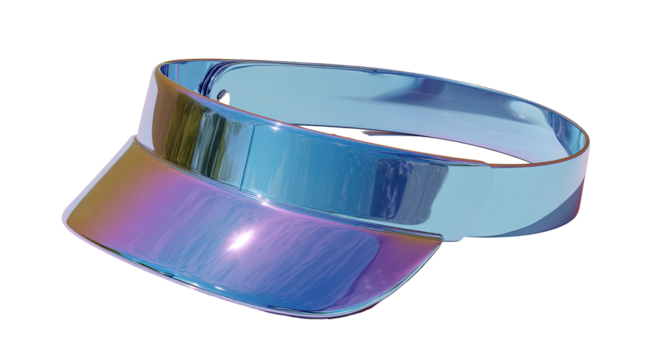 Shiny, iridescent visor,  a vibrant, reflective visor
