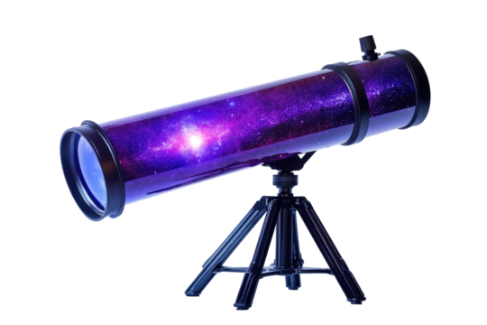 Modern Silver Telescope on Tripod with Abstract Purple and Pink Design
