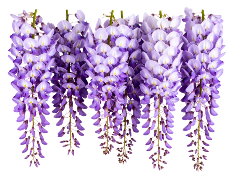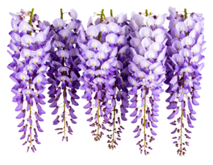 Cascading Wisteria Flowers in Purple Tones, Top View Cluster, Transparent PNG”